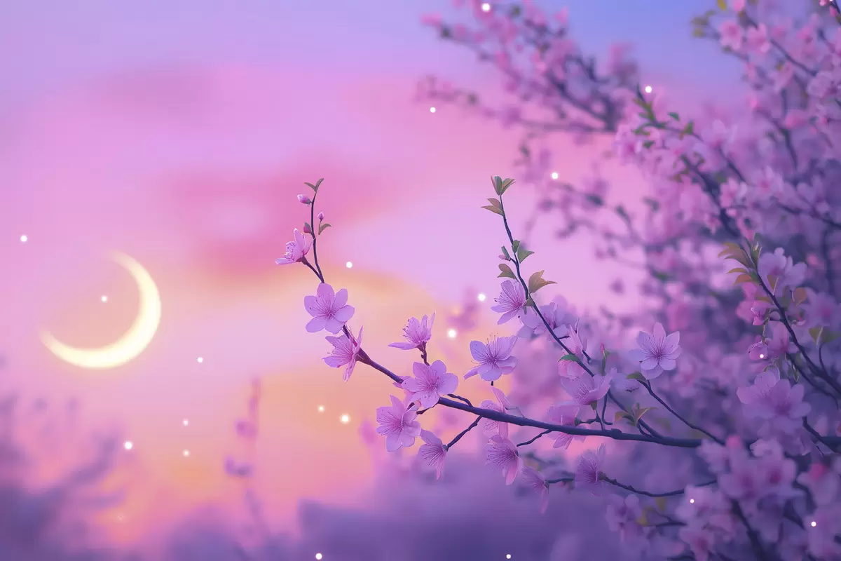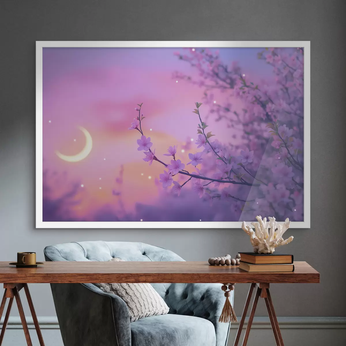 Poster Cielo viola con luna e ciliegi Nr f44717