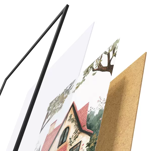Il poster è composto da cornice, plexiglass, immagine stampata e supporto in truciolato. Il poster può essere immediatamente appeso alla parete grazie ai supporti sul retro.