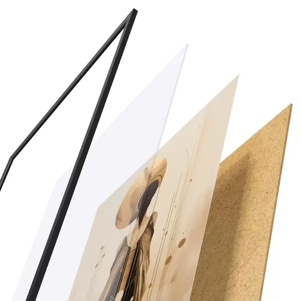 Il poster è composto da cornice, plexiglass, immagine stampata e supporto in truciolato. Il poster può essere immediatamente appeso alla parete grazie ai supporti sul retro.