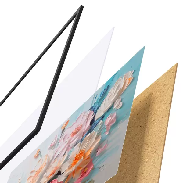 Il poster è composto da cornice, plexiglass, immagine stampata e supporto in truciolato. Il poster può essere immediatamente appeso alla parete grazie ai supporti sul retro.