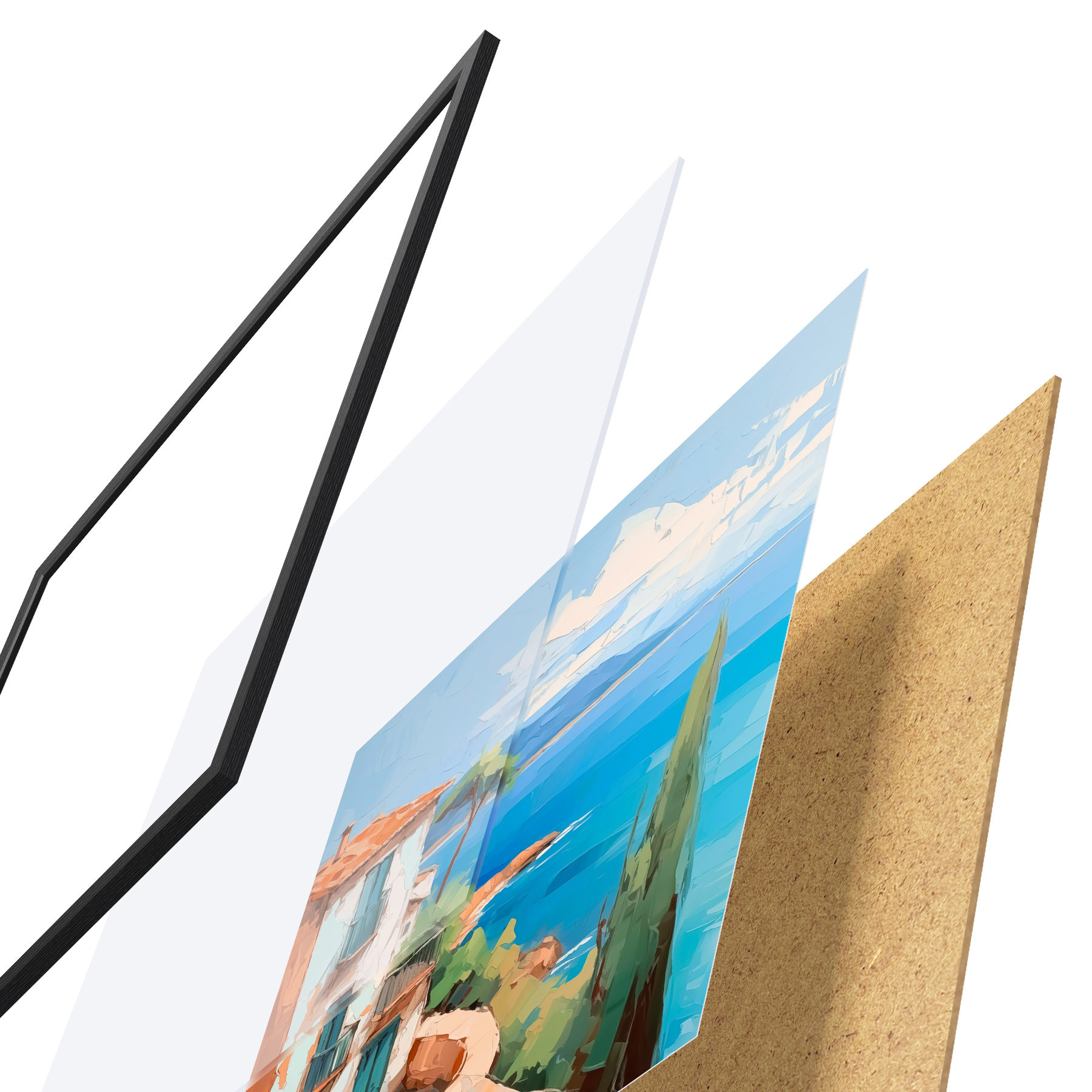Il poster è composto da cornice, plexiglass, immagine stampata e supporto in truciolato. Il poster può essere immediatamente appeso alla parete grazie ai supporti sul retro.