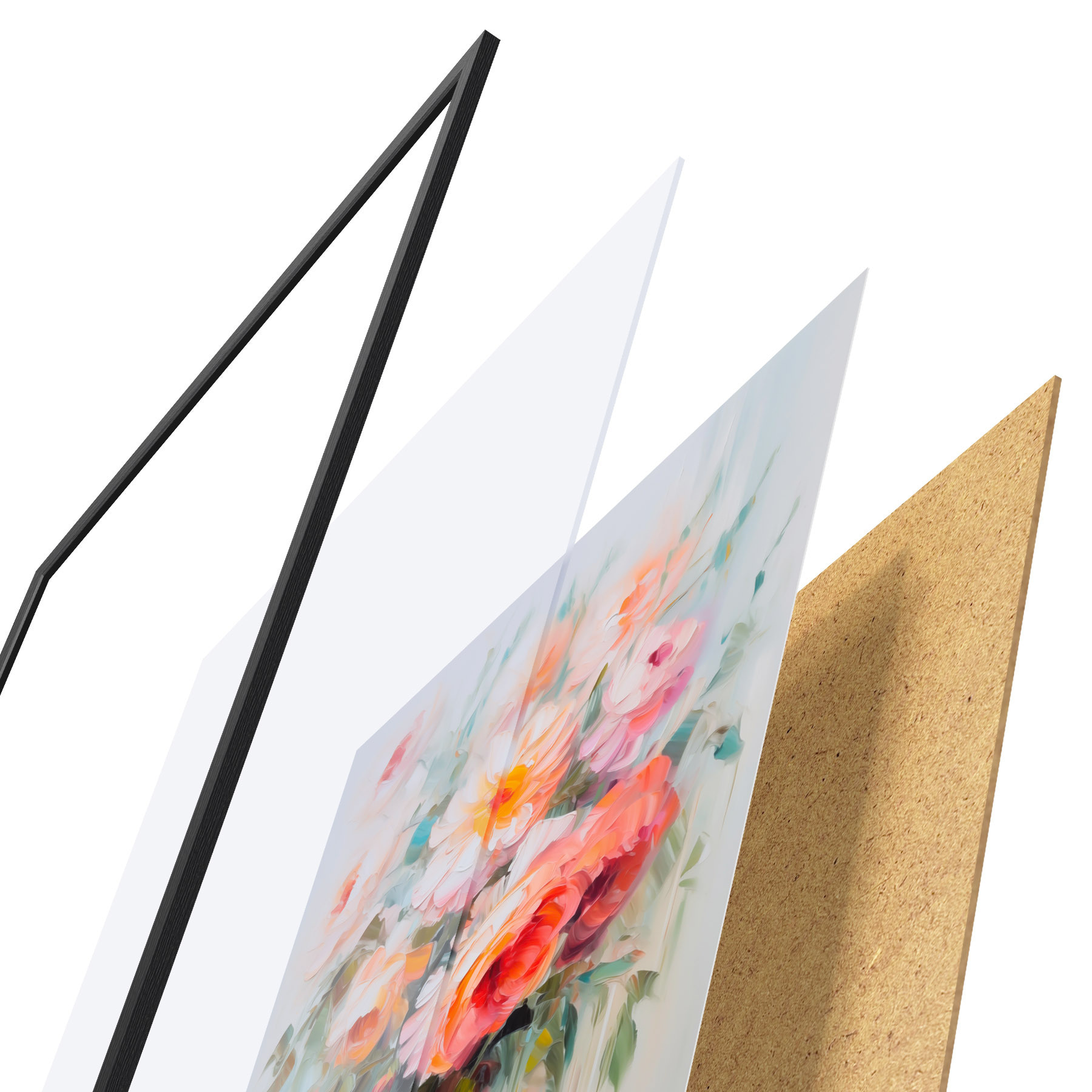 Il poster è composto da cornice, plexiglass, immagine stampata e supporto in truciolato. Il poster può essere immediatamente appeso alla parete grazie ai supporti sul retro.