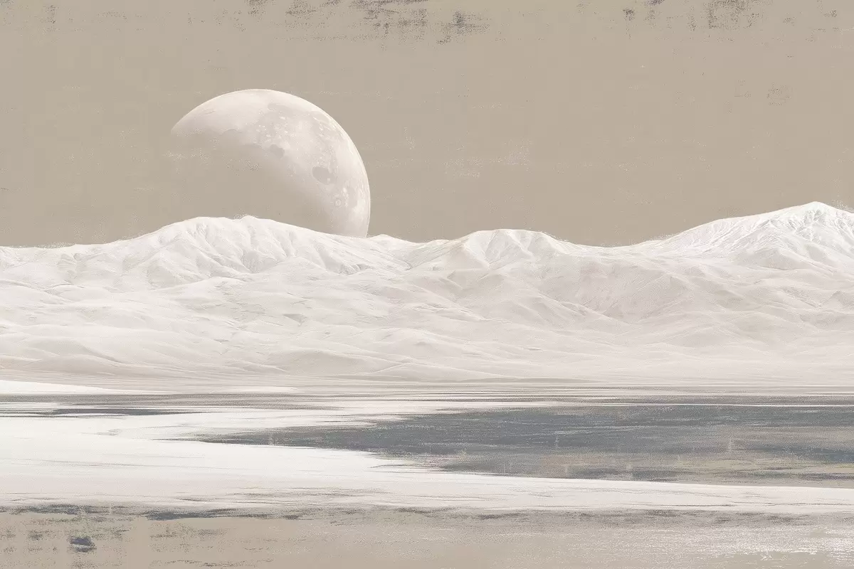 Poster Paesaggio desertico con luna all'orizzonte Nr f44787