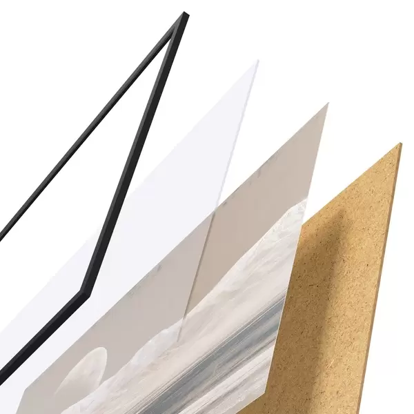 Il poster è composto da cornice, plexiglass, immagine stampata e supporto in truciolato. Il poster può essere immediatamente appeso alla parete grazie ai supporti sul retro.