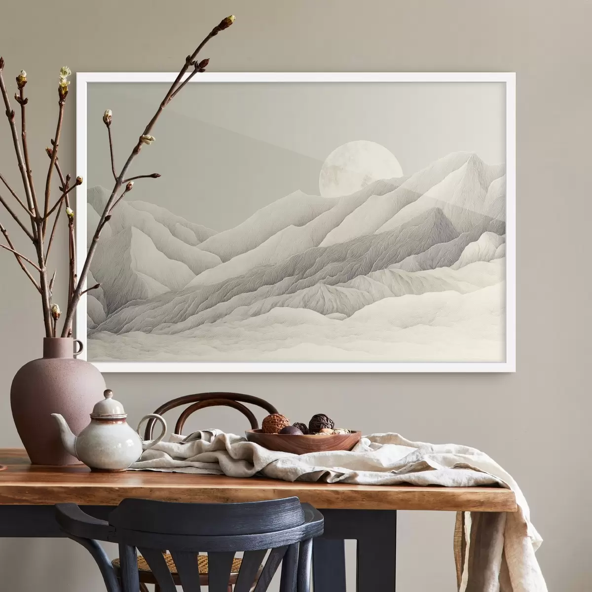 Poster Montagne con luna, disegno dettagliato f44788
