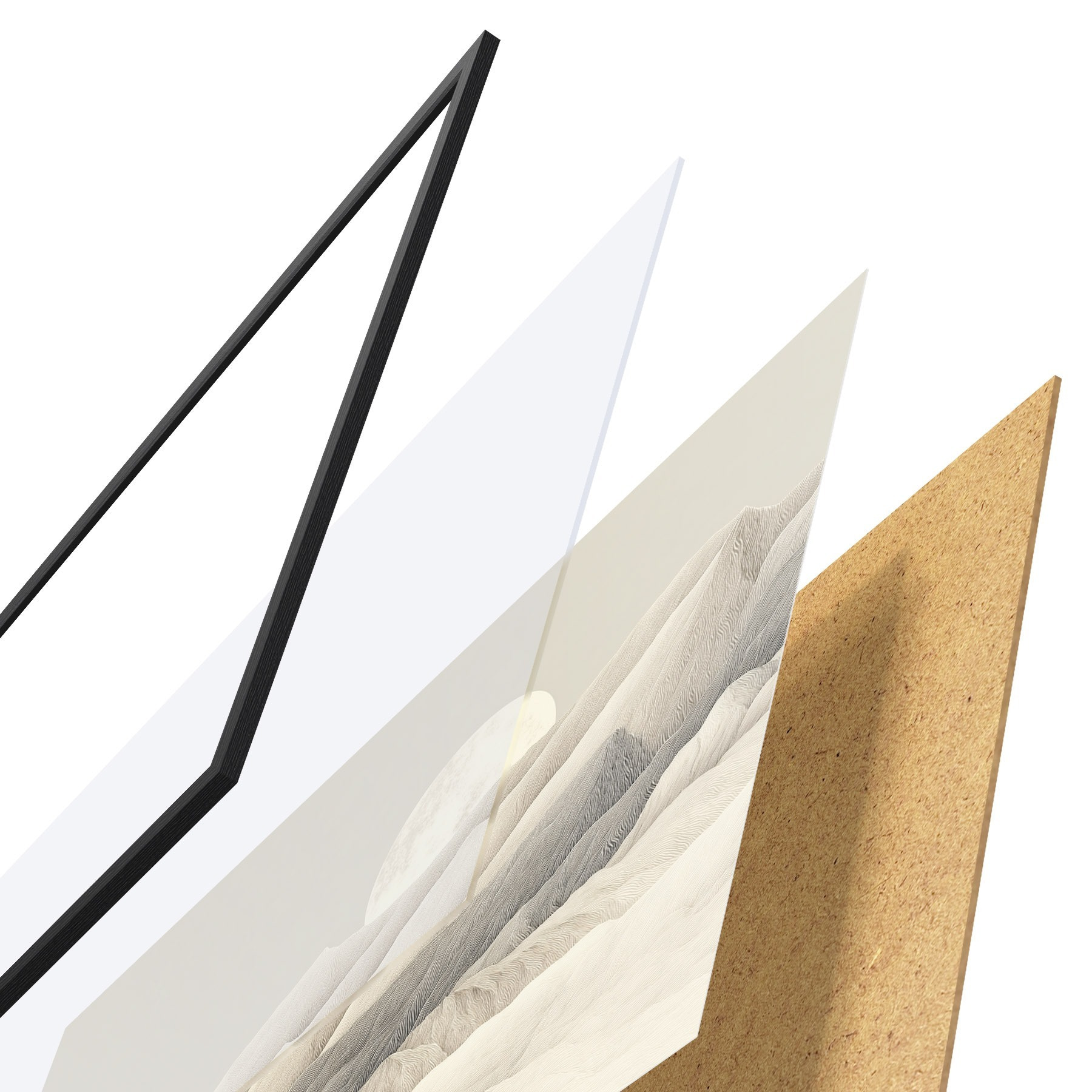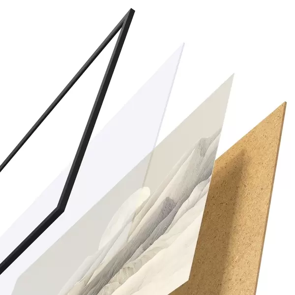 Il poster è composto da cornice, plexiglass, immagine stampata e supporto in truciolato. Il poster può essere immediatamente appeso alla parete grazie ai supporti sul retro.