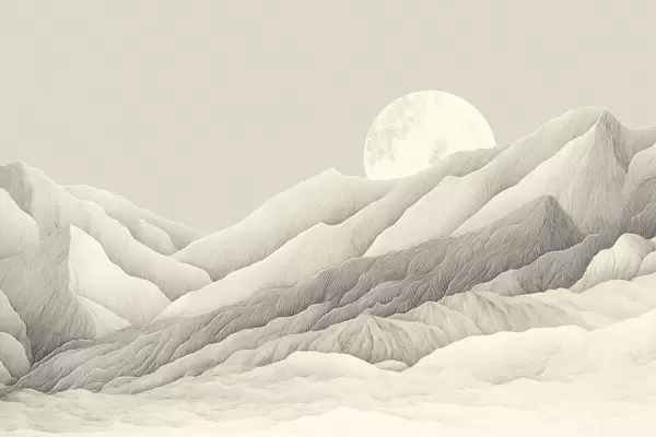 Poster Montagne con luna, disegno dettagliato f44788