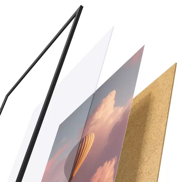 Il poster è composto da cornice, plexiglass, immagine stampata e supporto in truciolato. Il poster può essere immediatamente appeso alla parete grazie ai supporti sul retro.