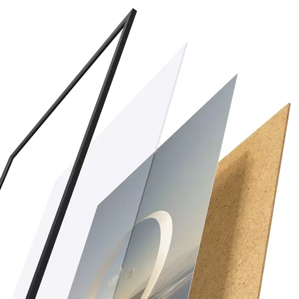 Il poster è composto da cornice, plexiglass, immagine stampata e supporto in truciolato. Il poster può essere immediatamente appeso alla parete grazie ai supporti sul retro.