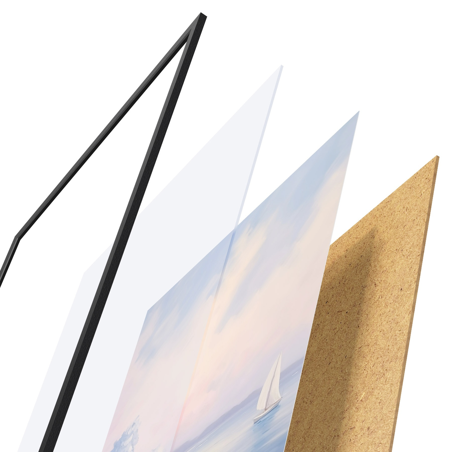 Il poster è composto da cornice, plexiglass, immagine stampata e supporto in truciolato. Il poster può essere immediatamente appeso alla parete grazie ai supporti sul retro.