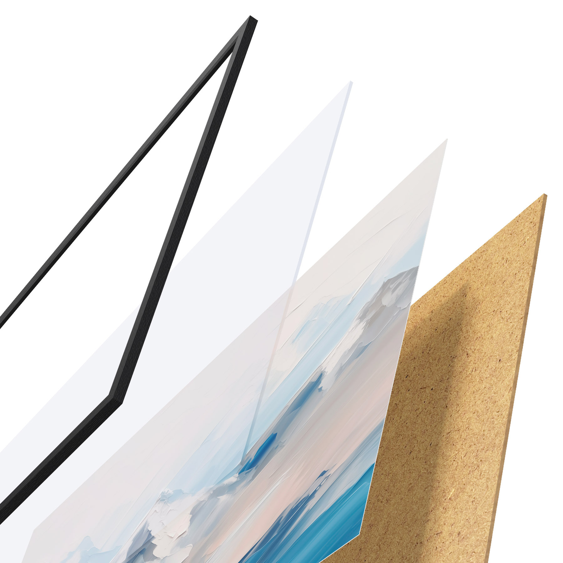 Il poster è composto da cornice, plexiglass, immagine stampata e supporto in truciolato. Il poster può essere immediatamente appeso alla parete grazie ai supporti sul retro.