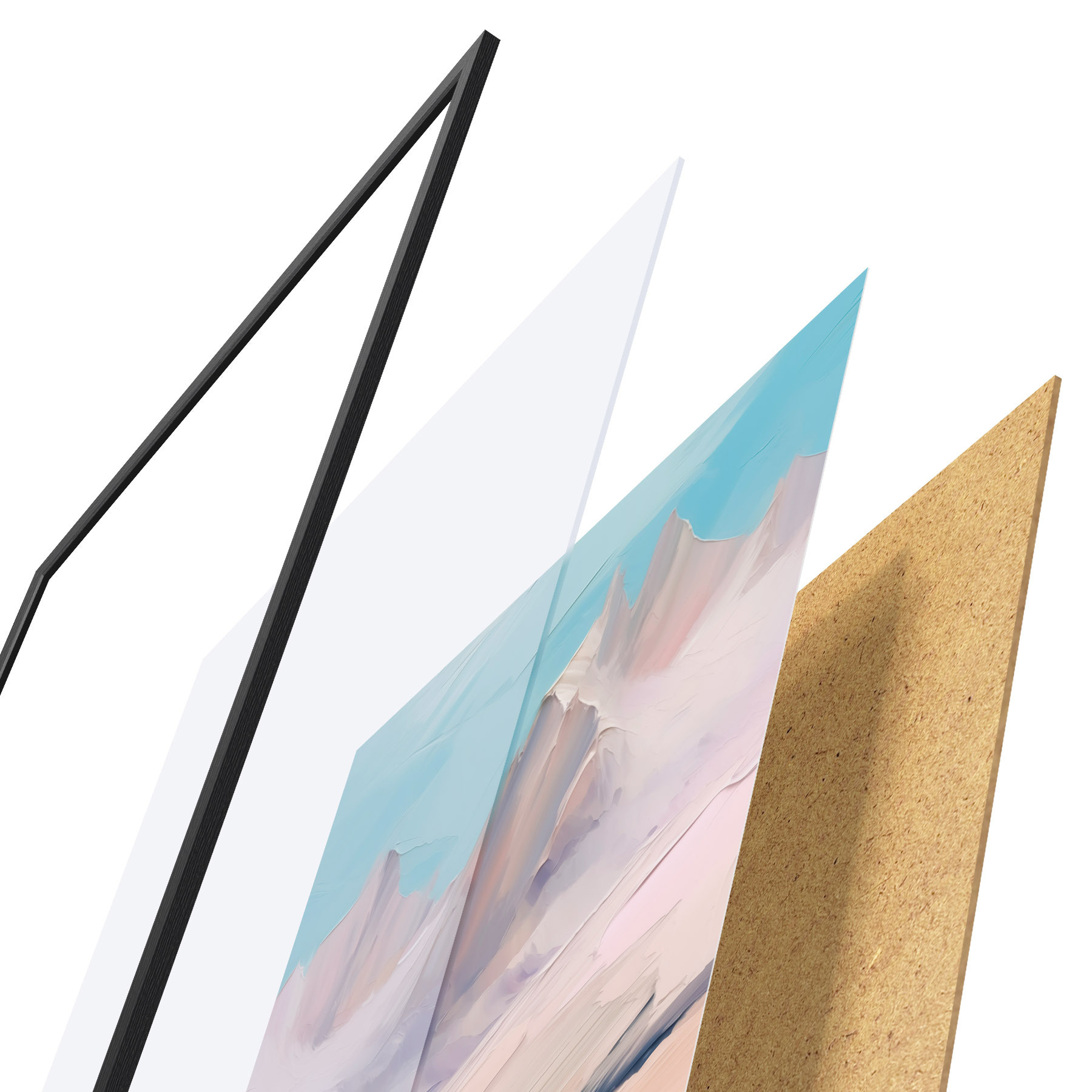 Il poster è composto da cornice, plexiglass, immagine stampata e supporto in truciolato. Il poster può essere immediatamente appeso alla parete grazie ai supporti sul retro.