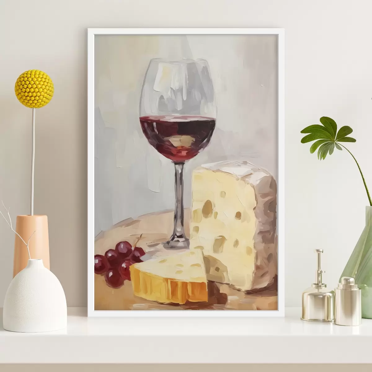 Poster Bicchiere di vino vicino al formaggio Nr f44829