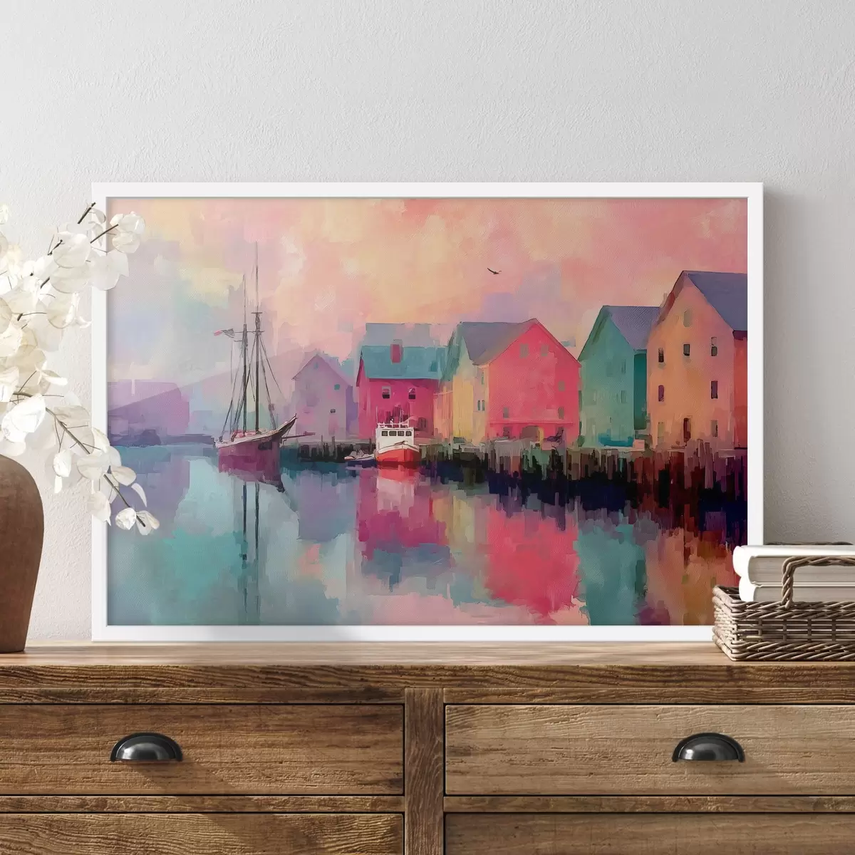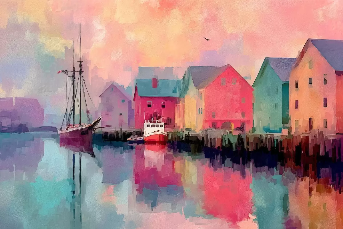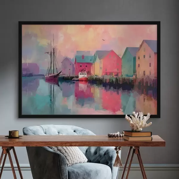 Poster Case colorate vicino all'acqua in stile pennellata Nr f44837