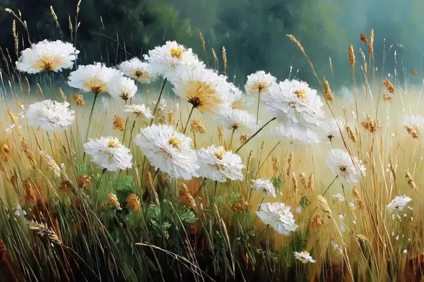 Poster Fiori bianchi in un prato in stile olio Nr f44842