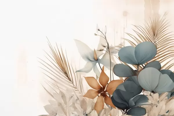 Poster Foglie e fiori decorativi in stile acquerello Nr f44843