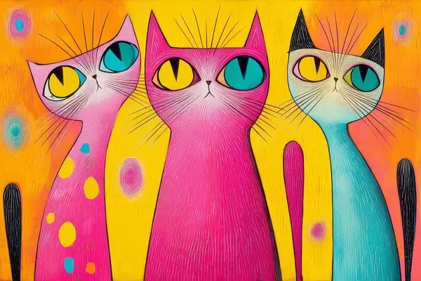 Poster Gatti giocosi con occhi grandi in stile artistico Nr f44845