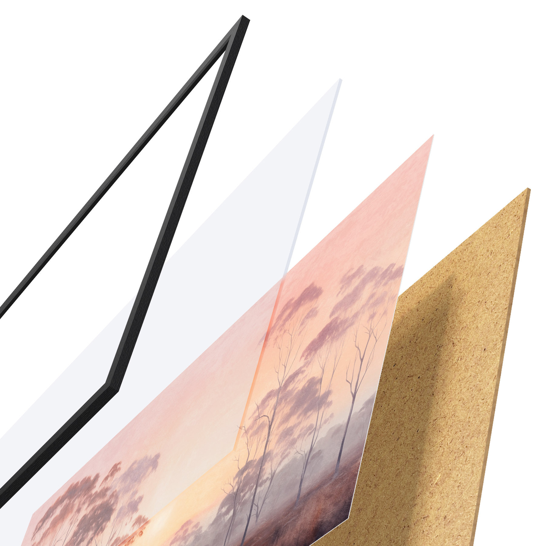 Il poster è composto da cornice, plexiglass, immagine stampata e supporto in truciolato. Il poster può essere immediatamente appeso alla parete grazie ai supporti sul retro.