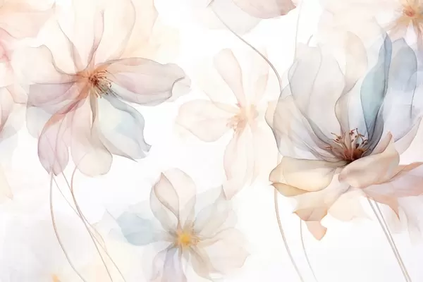 Poster Fiori traslucidi e strutturati in colori pastello, petali delicati, linee delicate su sfondo bianco Nr f44855