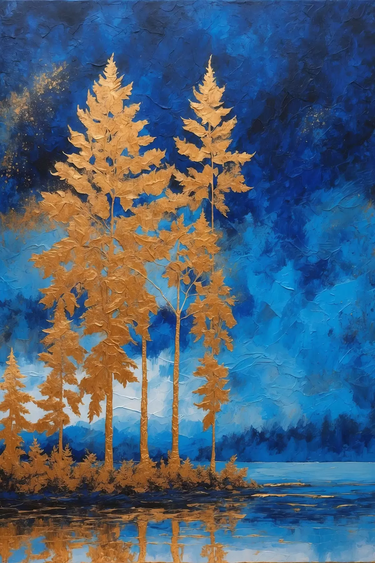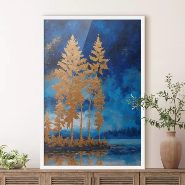 Poster Alberi sullo sfondo del cielo notturno in tonalità blu Nr f44888