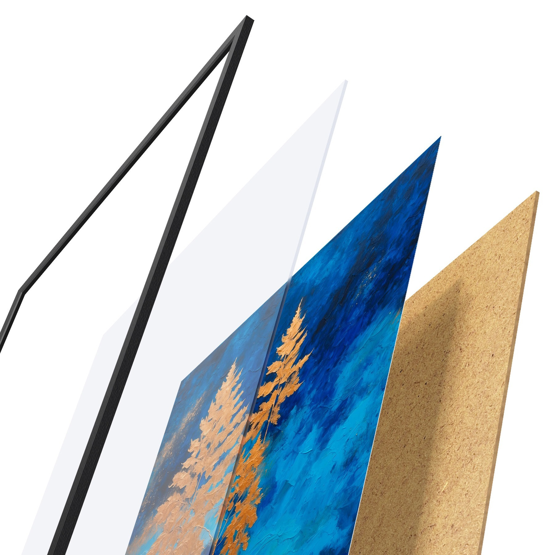 Il poster è composto da cornice, plexiglass, immagine stampata e supporto in truciolato. Il poster può essere immediatamente appeso alla parete grazie ai supporti sul retro.
