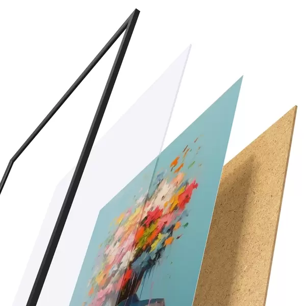 Il poster è composto da cornice, plexiglass, immagine stampata e supporto in truciolato. Il poster può essere immediatamente appeso alla parete grazie ai supporti sul retro.