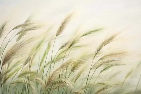 Poster Campo di grano con spighe gialle e verdi, pennellate morbide e una tavolozza di colori chiari, atmosfera naturale Nr f44923