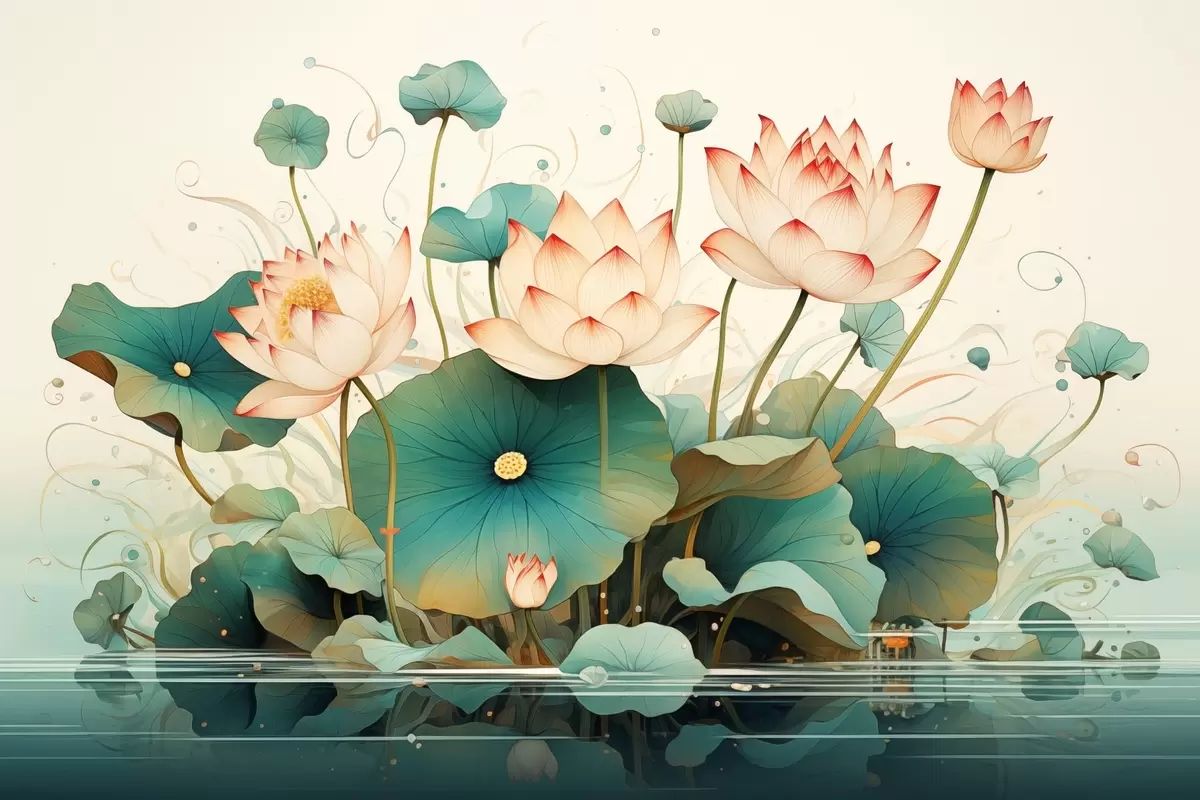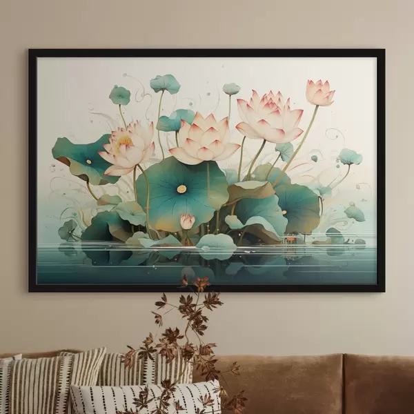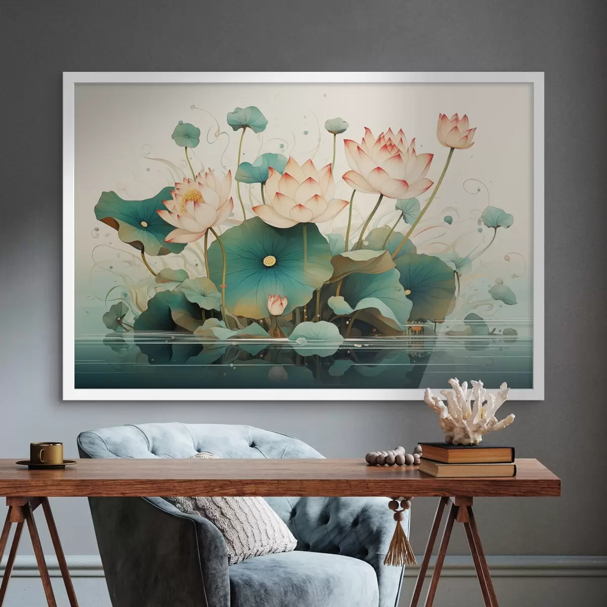 Poster Loto con grandi foglie in stile illustrativo Nr f44939