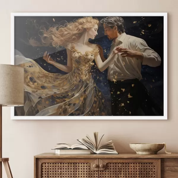Poster Coppia in movimento nei toni del giallo-blu in stile pittorico Nr f44940