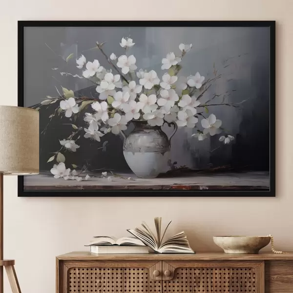 Poster Rami fioriti in un vaso su sfondo scuro in stile pittoresco Nr f44949