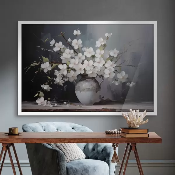 Poster Rami fioriti in un vaso su sfondo scuro in stile pittoresco f44949