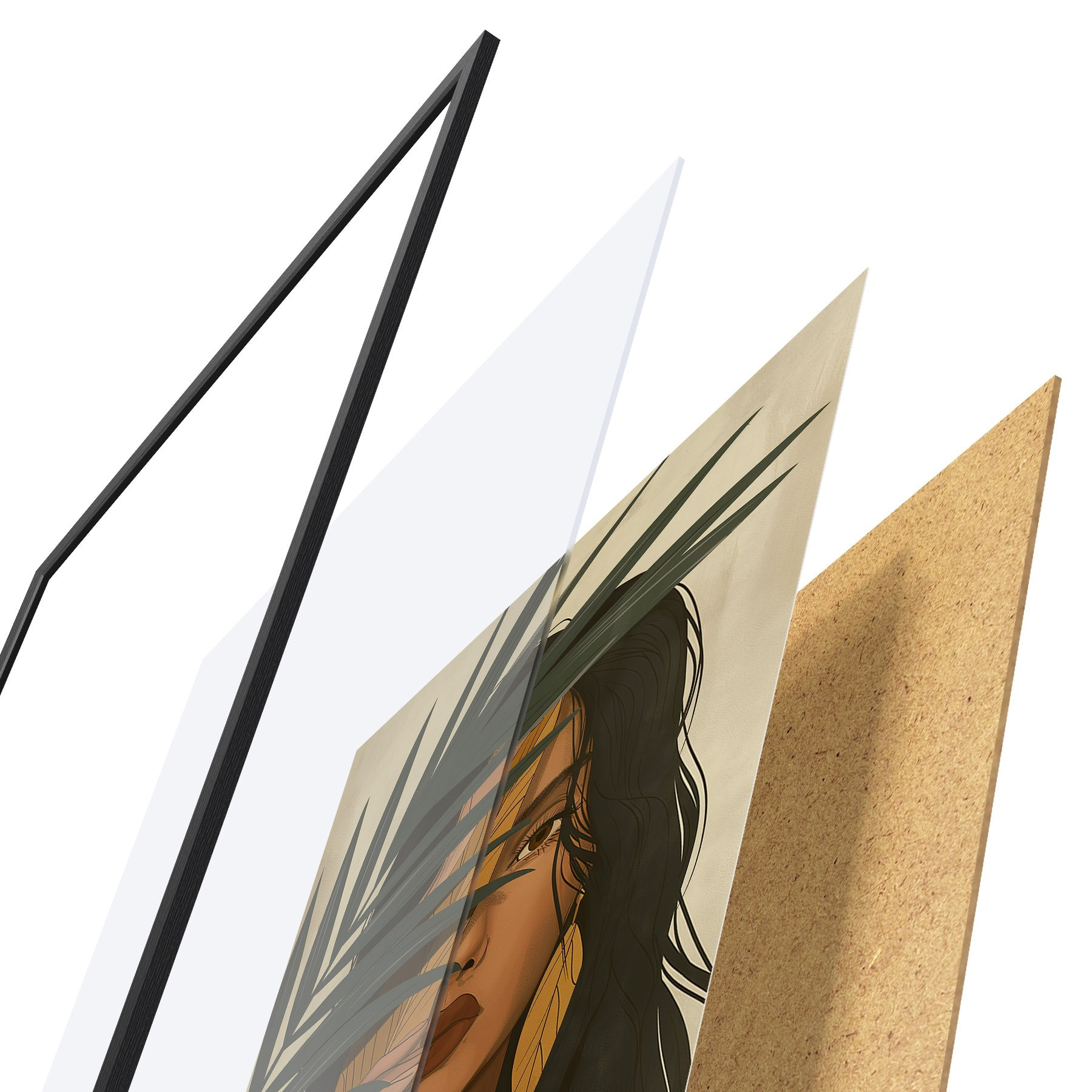 Il poster è composto da cornice, plexiglass, immagine stampata e supporto in truciolato. Il poster può essere immediatamente appeso alla parete grazie ai supporti sul retro.