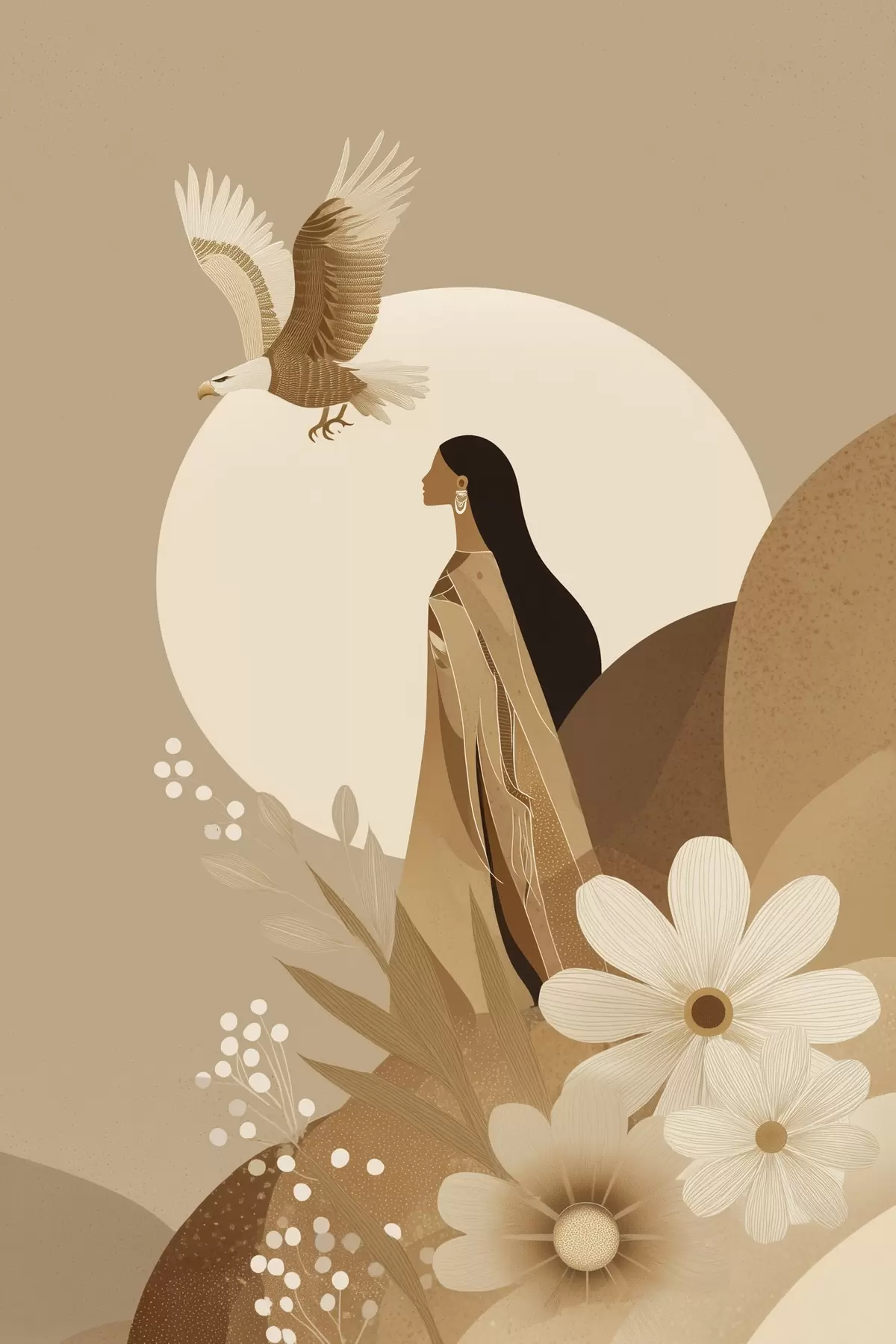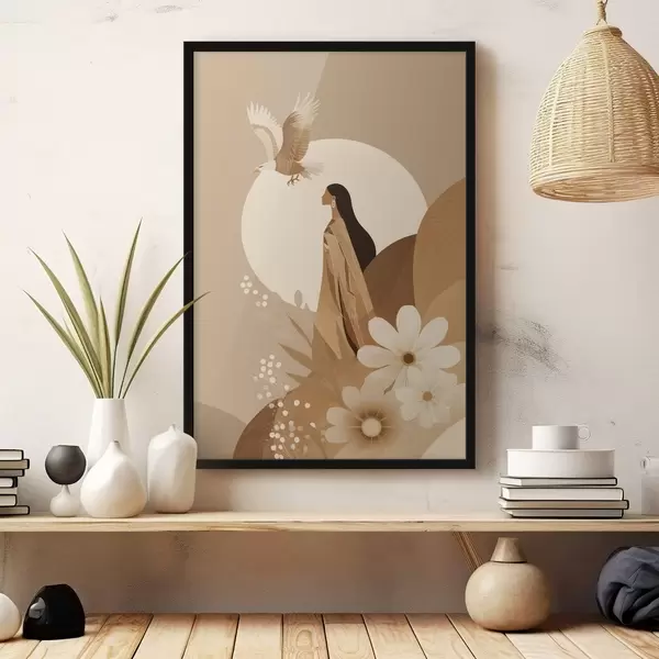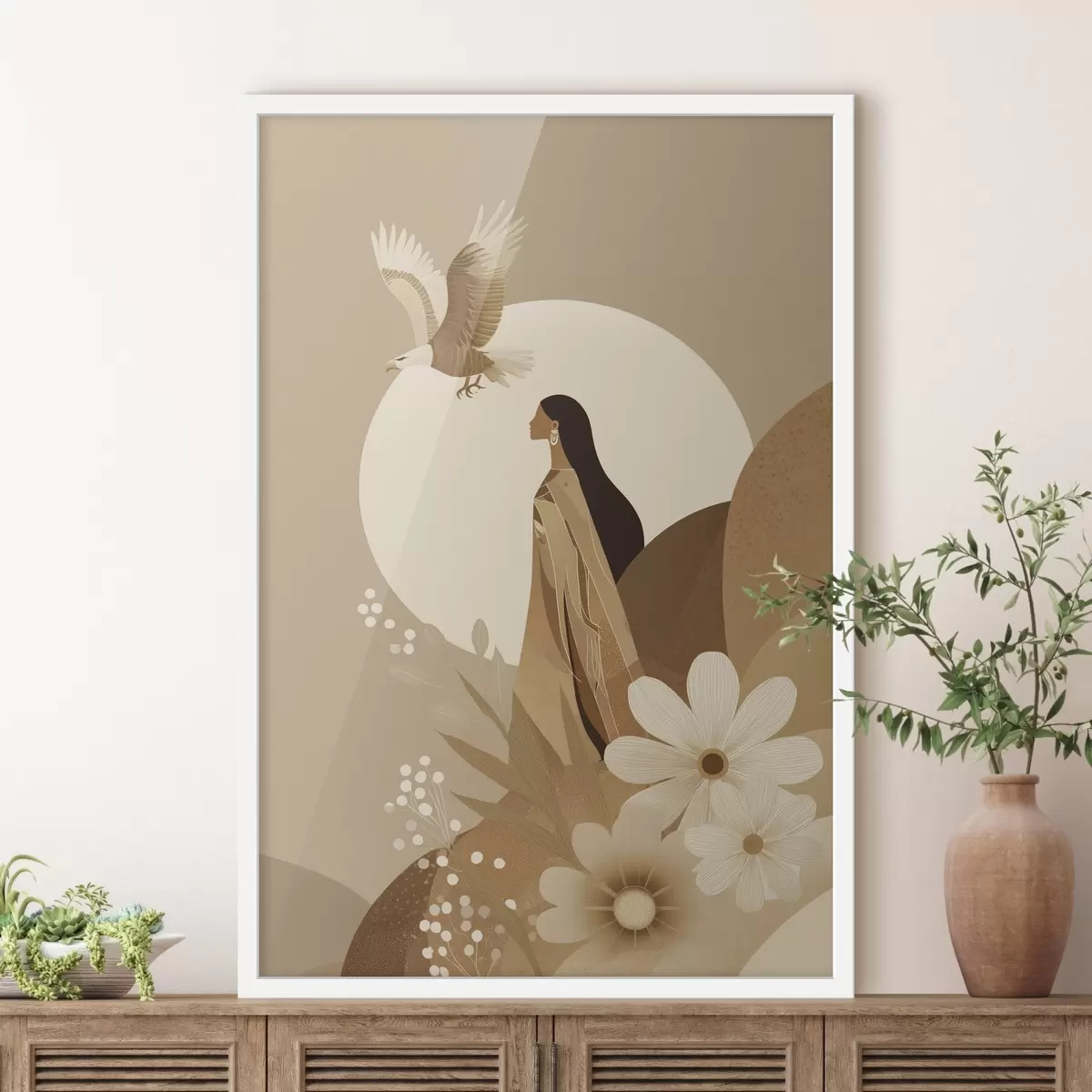 Poster Astrazione con donna e aquila nel cielo, colori beige Nr f44978
