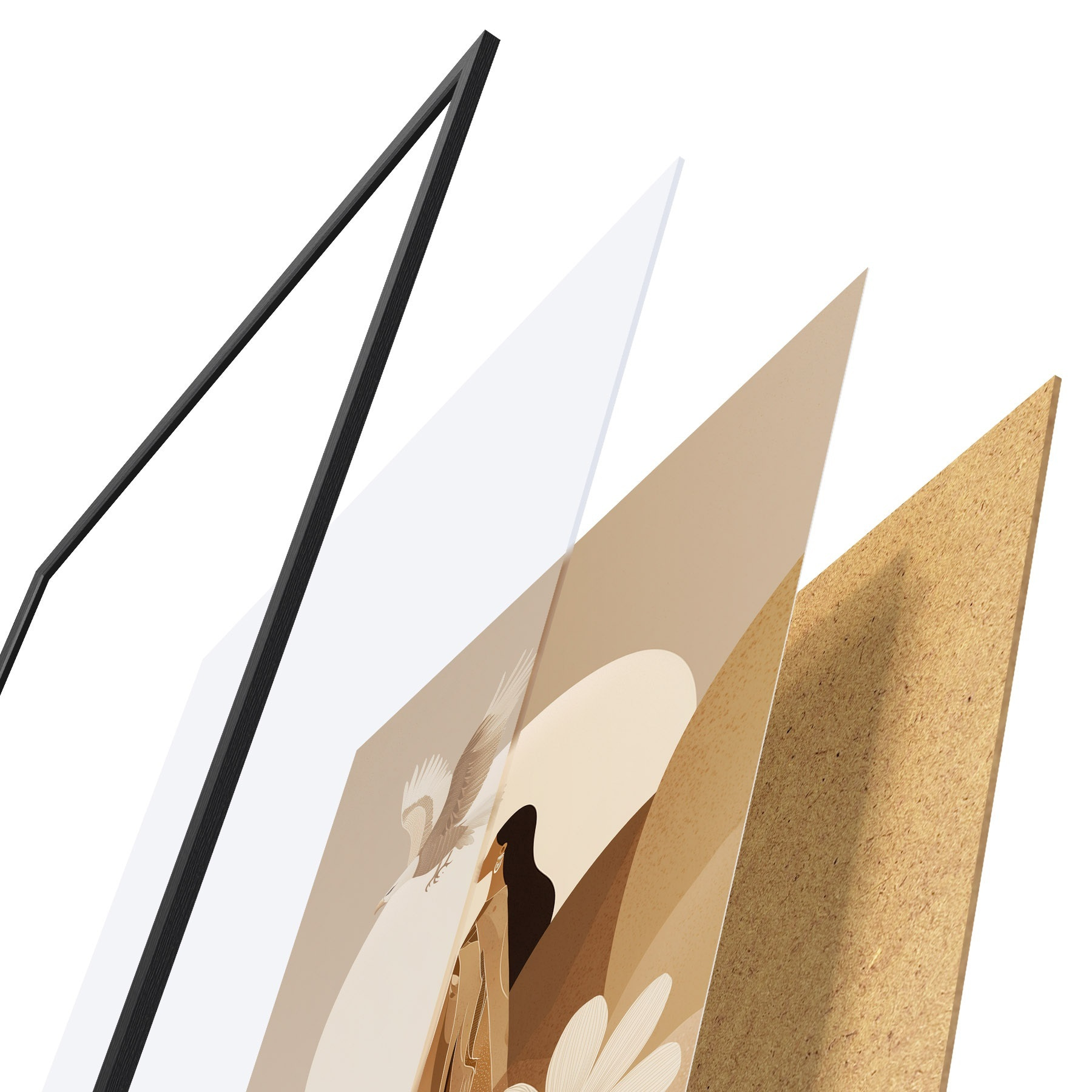 Il poster è composto da cornice, plexiglass, immagine stampata e supporto in truciolato. Il poster può essere immediatamente appeso alla parete grazie ai supporti sul retro.