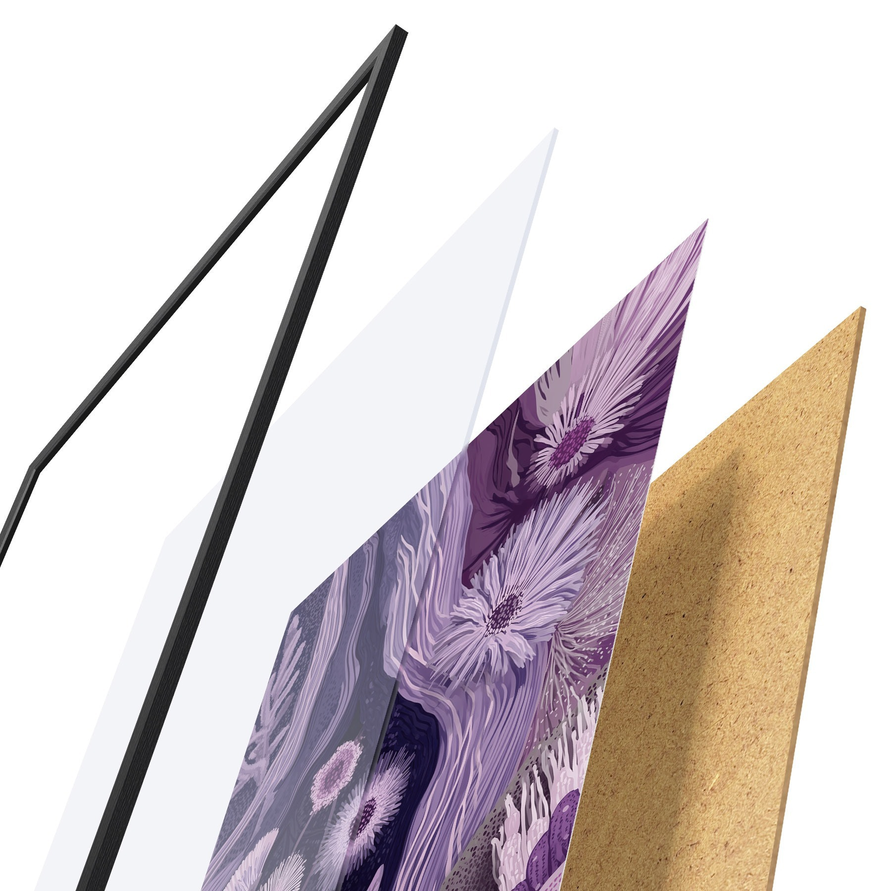 Il poster è composto da cornice, plexiglass, immagine stampata e supporto in truciolato. Il poster può essere immediatamente appeso alla parete grazie ai supporti sul retro.