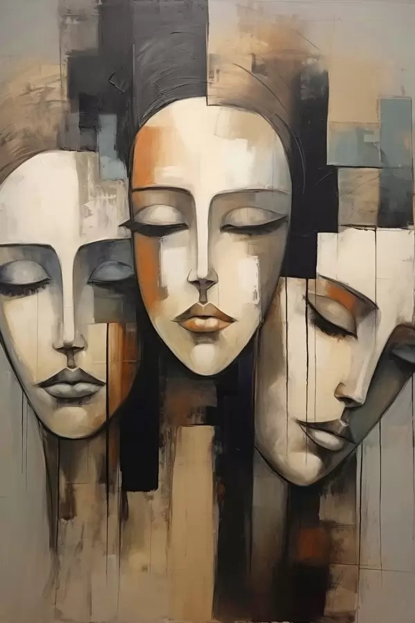 Poster Tre volti femminili con occhi chiusi in stile cubista Nr f45008