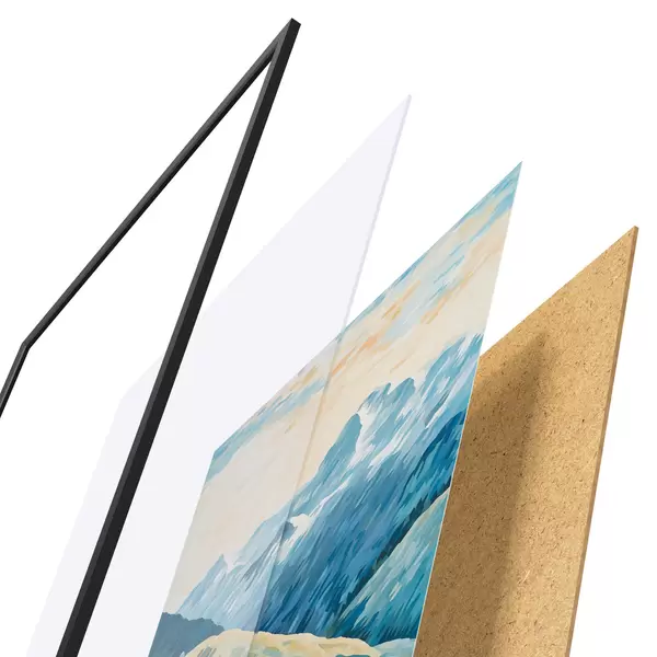 Il poster è composto da cornice, plexiglass, immagine stampata e supporto in truciolato. Il poster può essere immediatamente appeso alla parete grazie ai supporti sul retro.