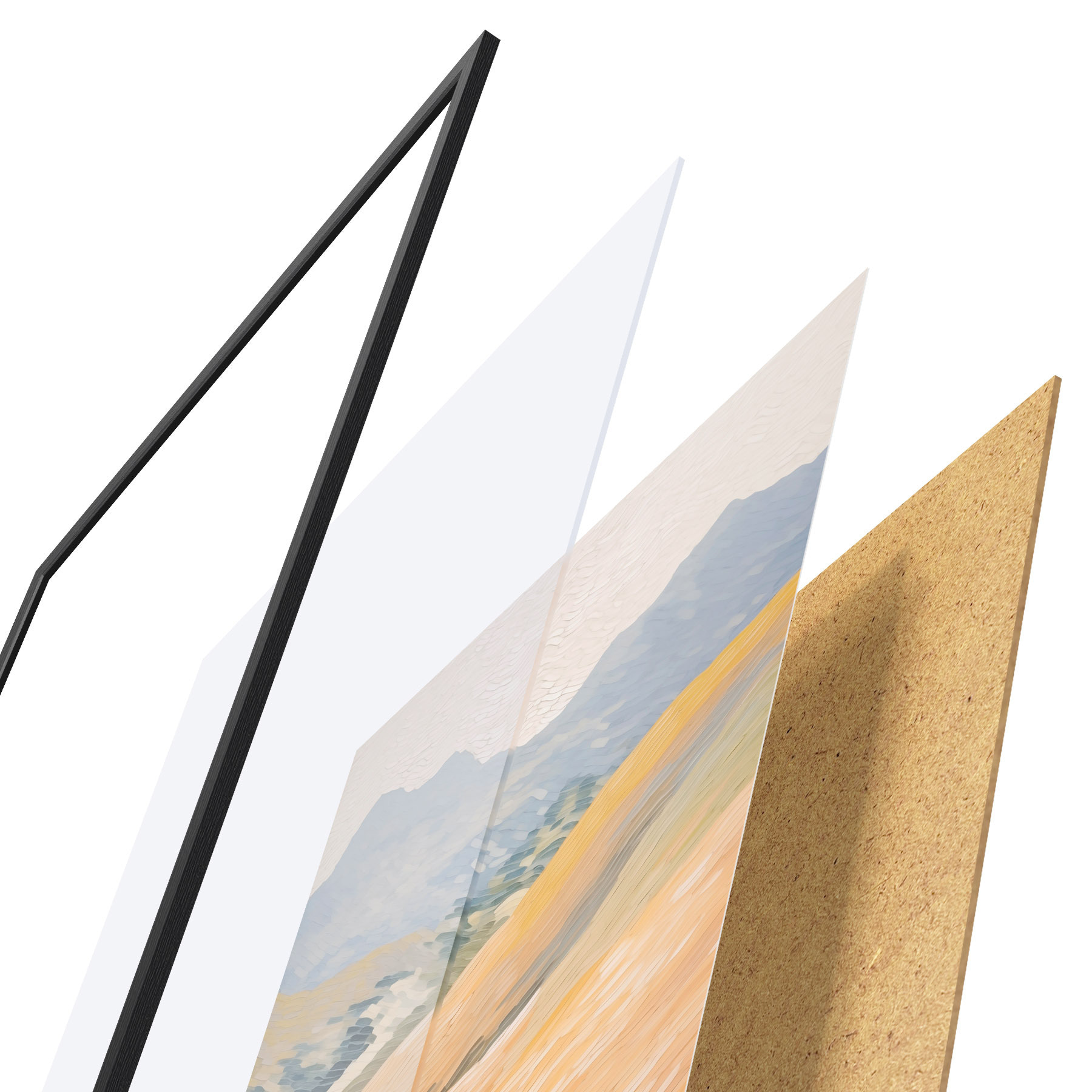 Il poster è composto da cornice, plexiglass, immagine stampata e supporto in truciolato. Il poster può essere immediatamente appeso alla parete grazie ai supporti sul retro.