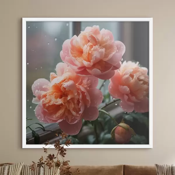 Poster Tre peonie con rugiada nella luce del mattino f45033
