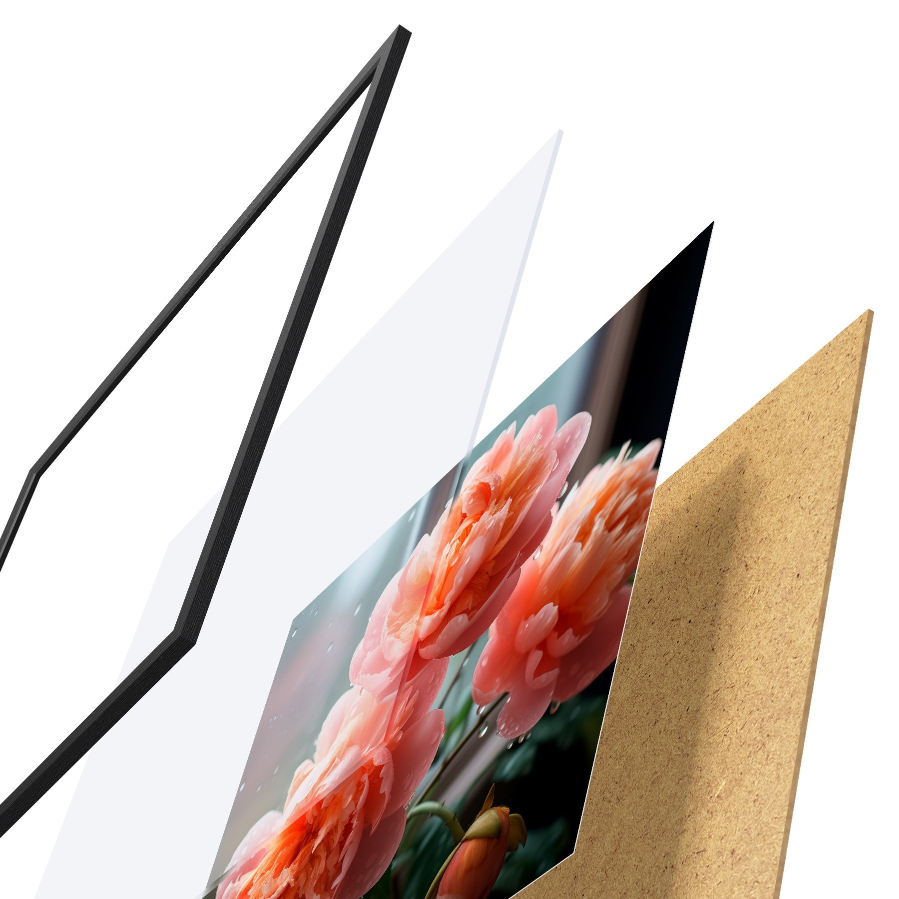 Il poster è composto da cornice, plexiglass, immagine stampata e supporto in truciolato. Il poster può essere immediatamente appeso alla parete grazie ai supporti sul retro.