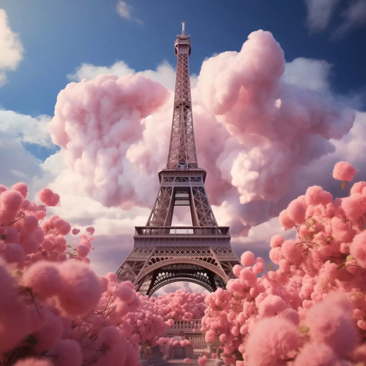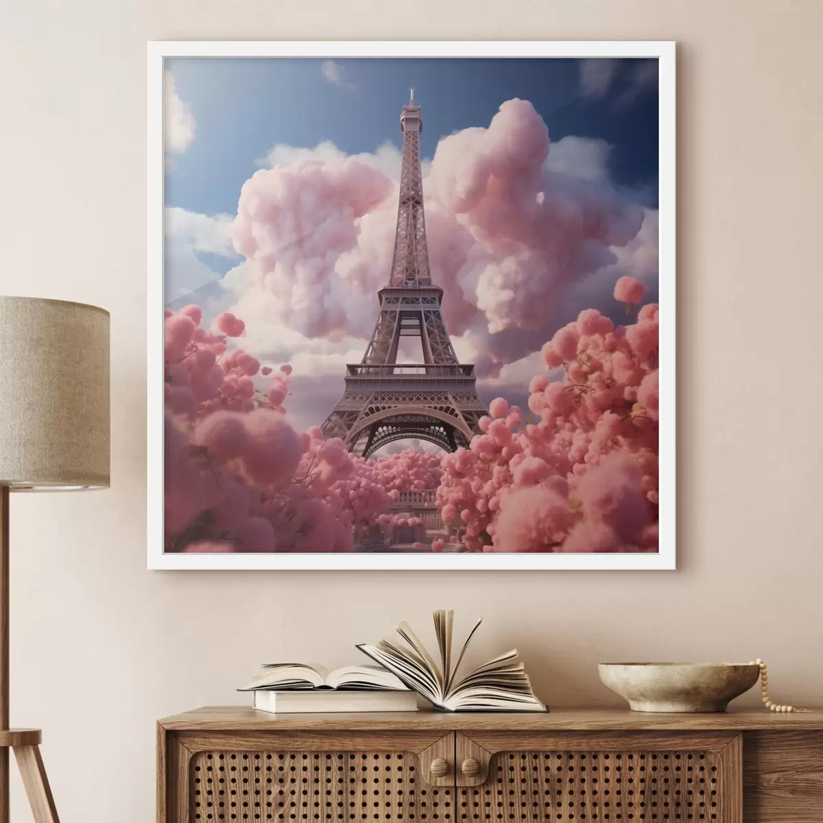 Poster Torre Eiffel tra le nuvole rosa in stile fantasy f45036