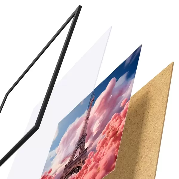 Il poster è composto da cornice, plexiglass, immagine stampata e supporto in truciolato. Il poster può essere immediatamente appeso alla parete grazie ai supporti sul retro.