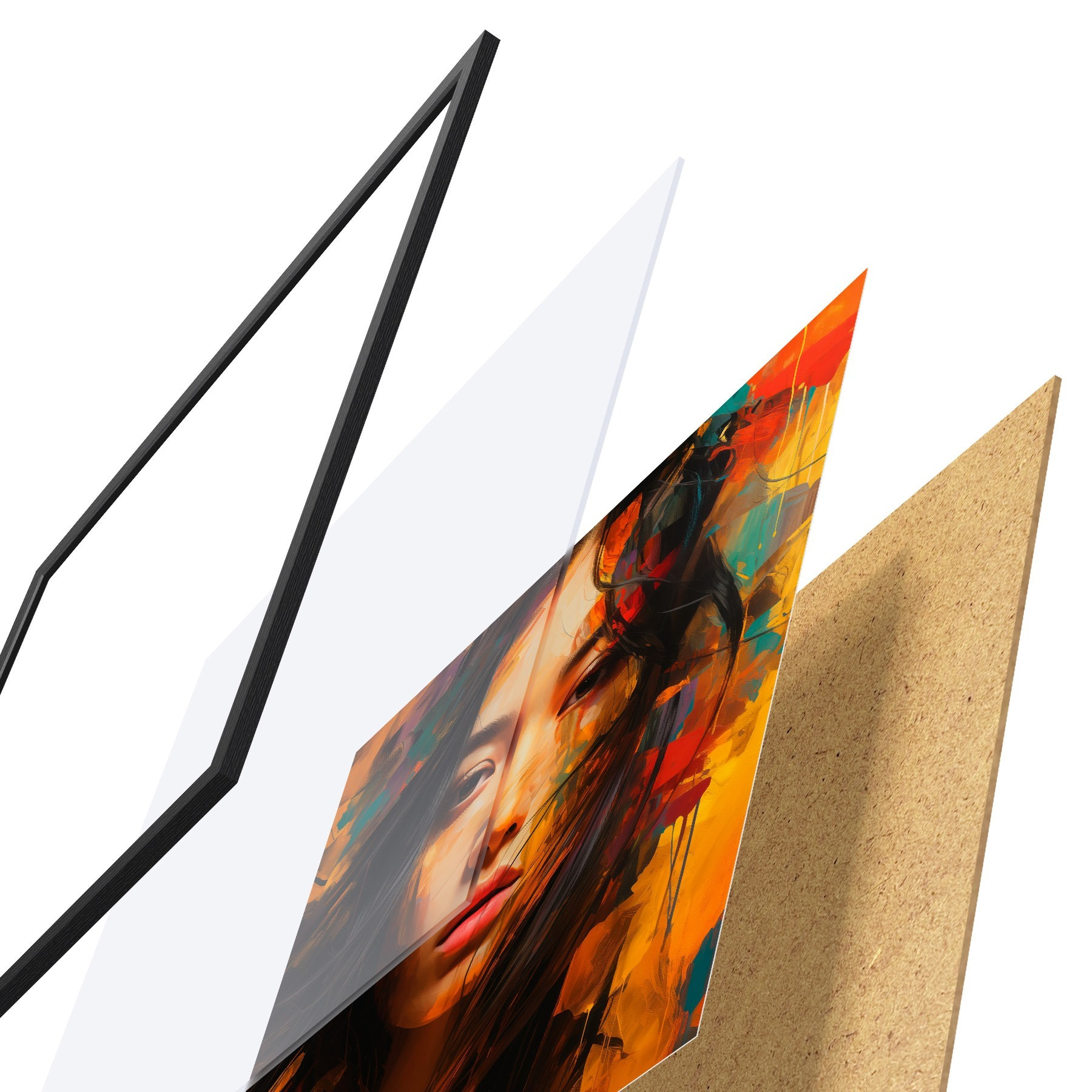 Il poster è composto da cornice, plexiglass, immagine stampata e supporto in truciolato. Il poster può essere immediatamente appeso alla parete grazie ai supporti sul retro.