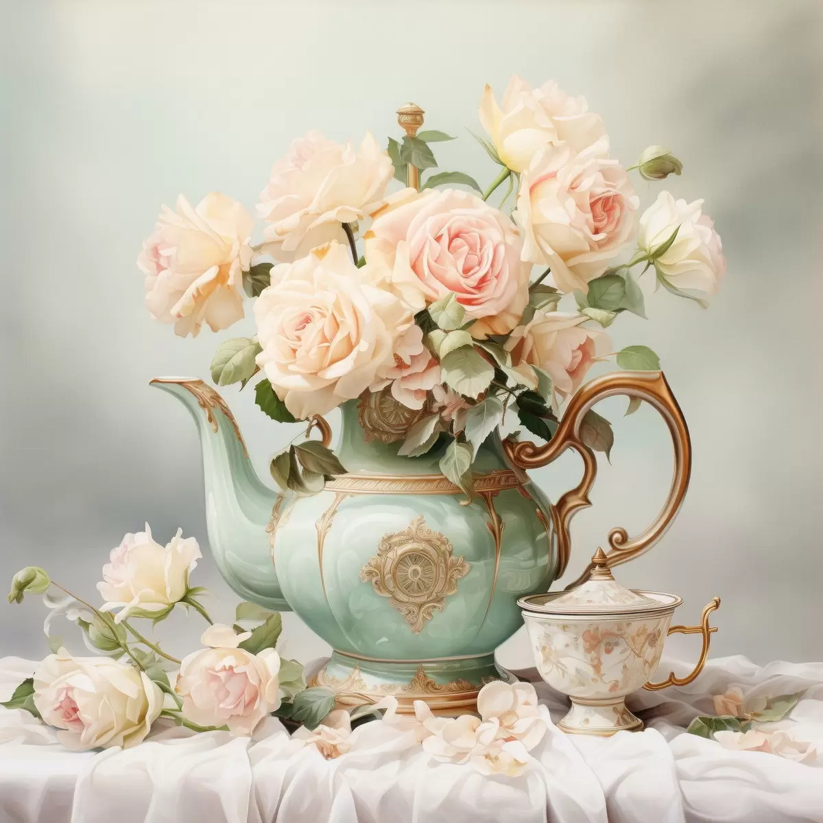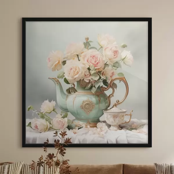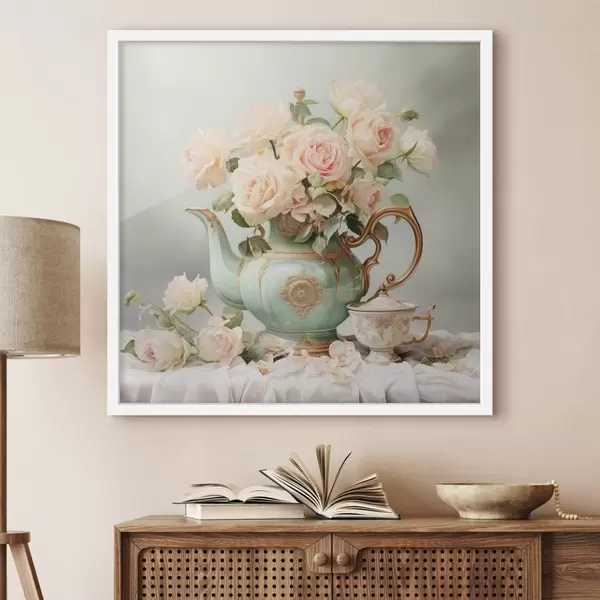 Poster Natura morta con rose delicate in un set da tè Nr f45045