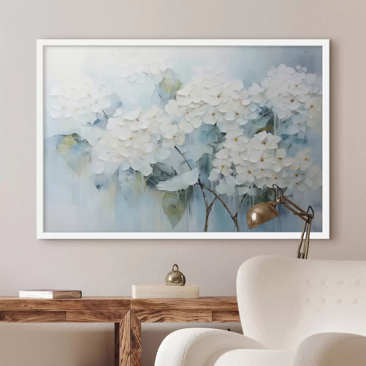 Poster Ortensie bianche in fiore in stile pittura ad olio Nr f45051