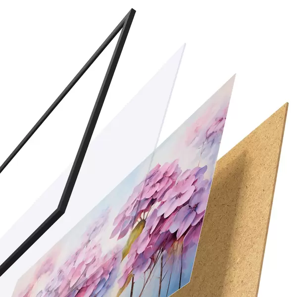 Il poster è composto da cornice, plexiglass, immagine stampata e supporto in truciolato. Il poster può essere immediatamente appeso alla parete grazie ai supporti sul retro.