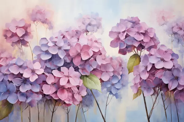 Poster Campo di ortensie delicate in tonalità pastello f45057