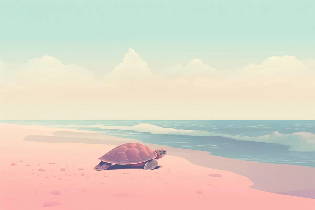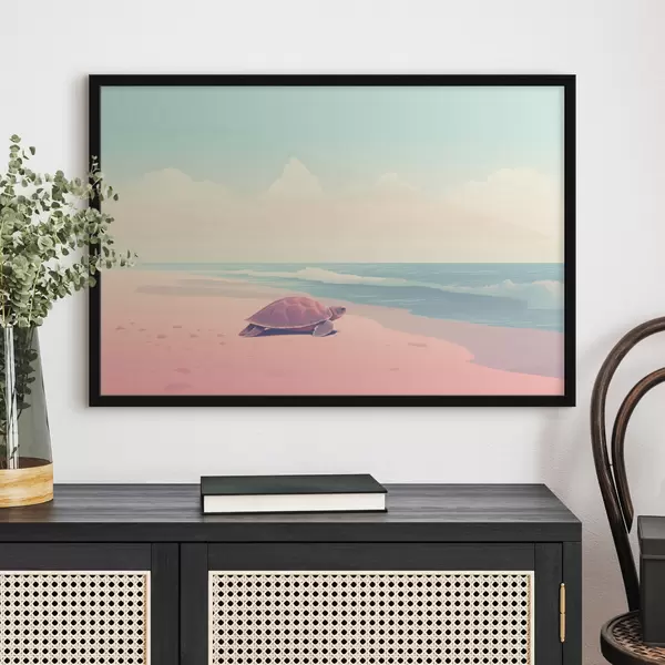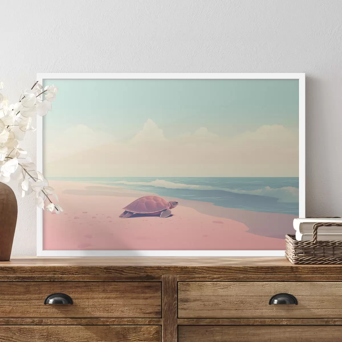 Poster Tartaruga marina su una spiaggia rosa: paesaggio minimalista Nr f45059