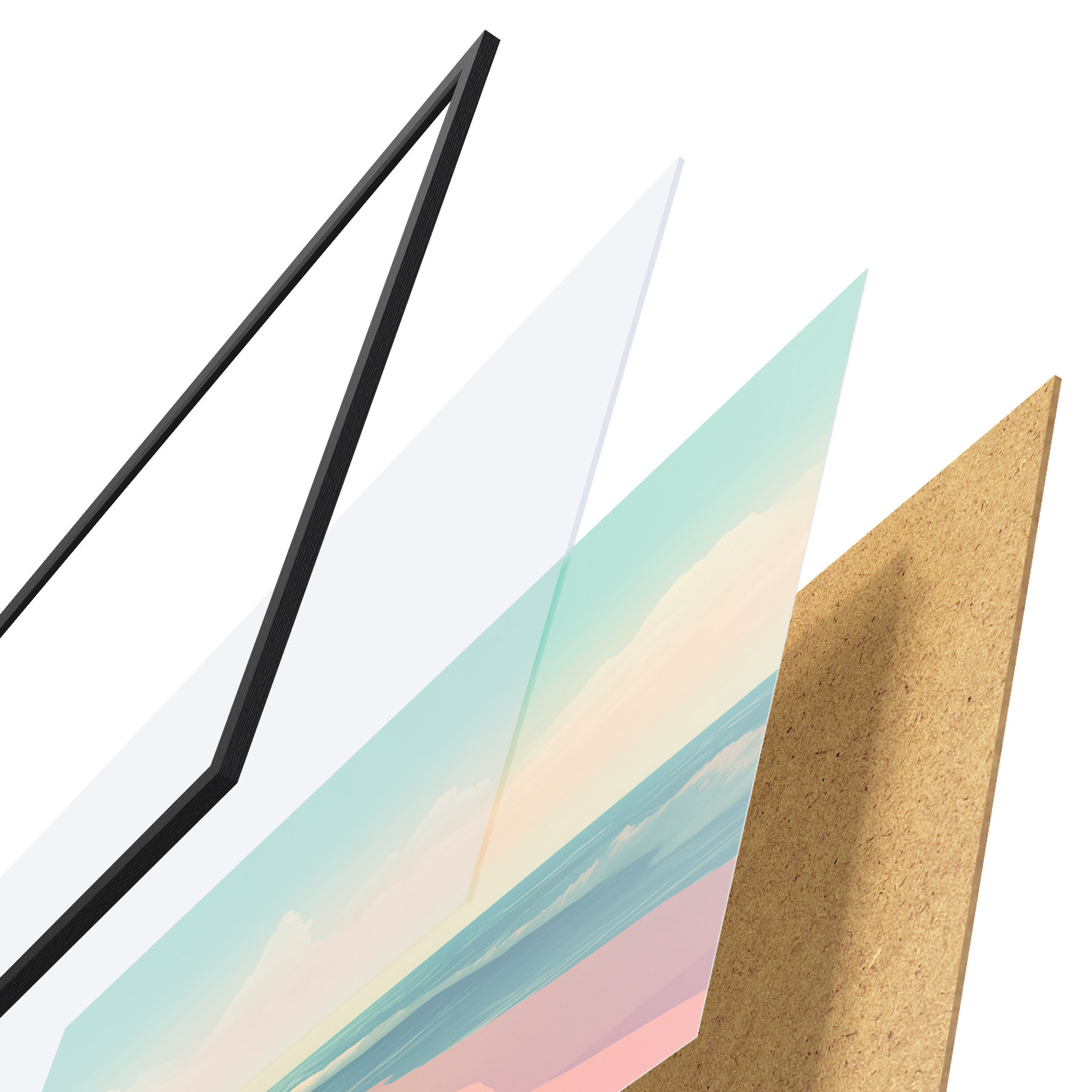Il poster è composto da cornice, plexiglass, immagine stampata e supporto in truciolato. Il poster può essere immediatamente appeso alla parete grazie ai supporti sul retro.