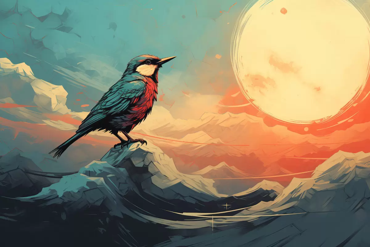 Poster Paesaggio artistico con uccello e cielo vibrante Nr f45060